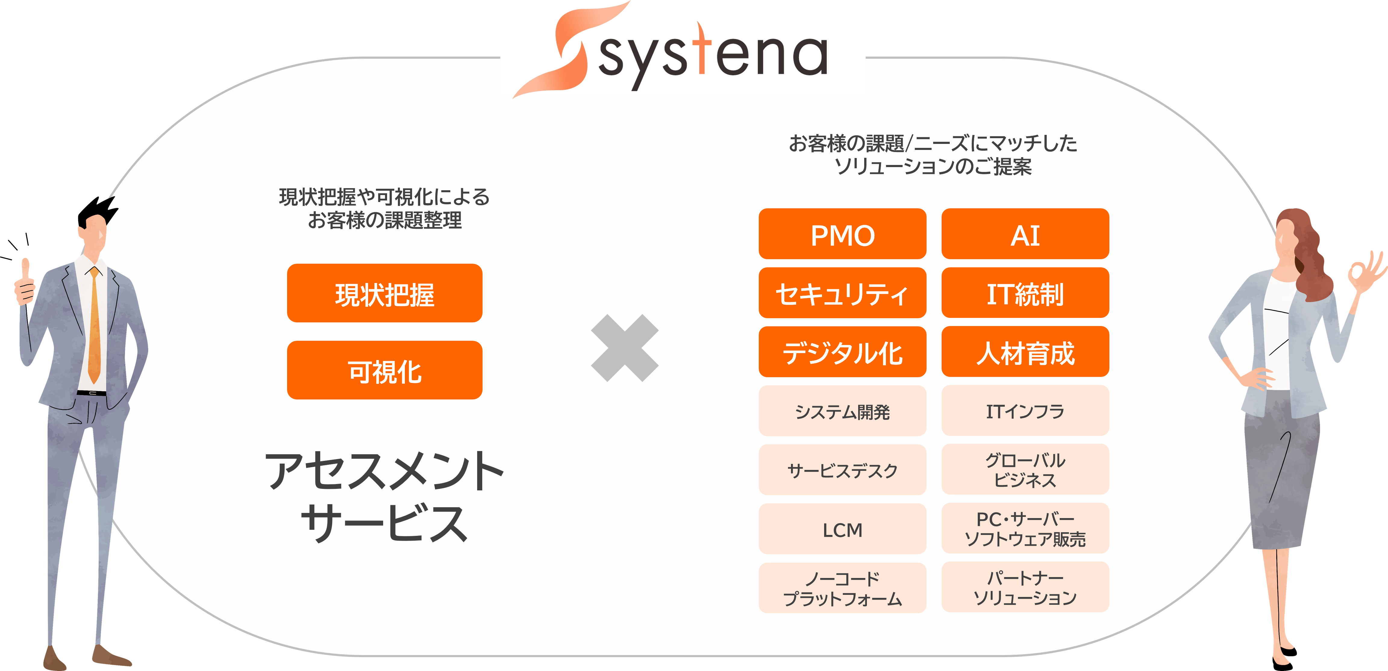 システナでは、お客様のゴールを見据えた現状把握・可視化を行い最適なソリューションを組み合わせご提供することでDXの戦略立案からデジタル技術やツールの導入・運用・定着までを伴走さらに、DXを担う「人」や「組織」を育てることでお客様の企業価値向上を実現します