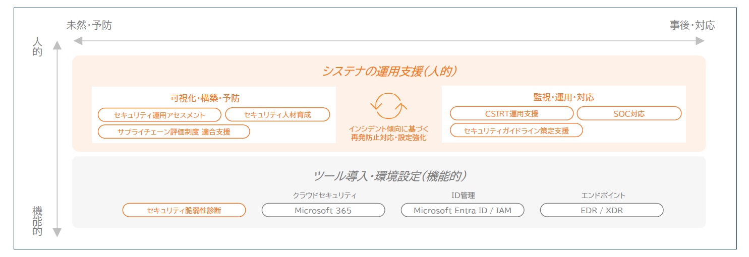 システナでは、攻撃の起点となる脆弱性を放置せず、「現状把握」からプラットフォーム診断やWebアプリ診断などの「詳細診断」、そして監視・出口対策や防御・運用強化などの「恒久的な対策」まで、段階的なアプローチでリスク排除します。