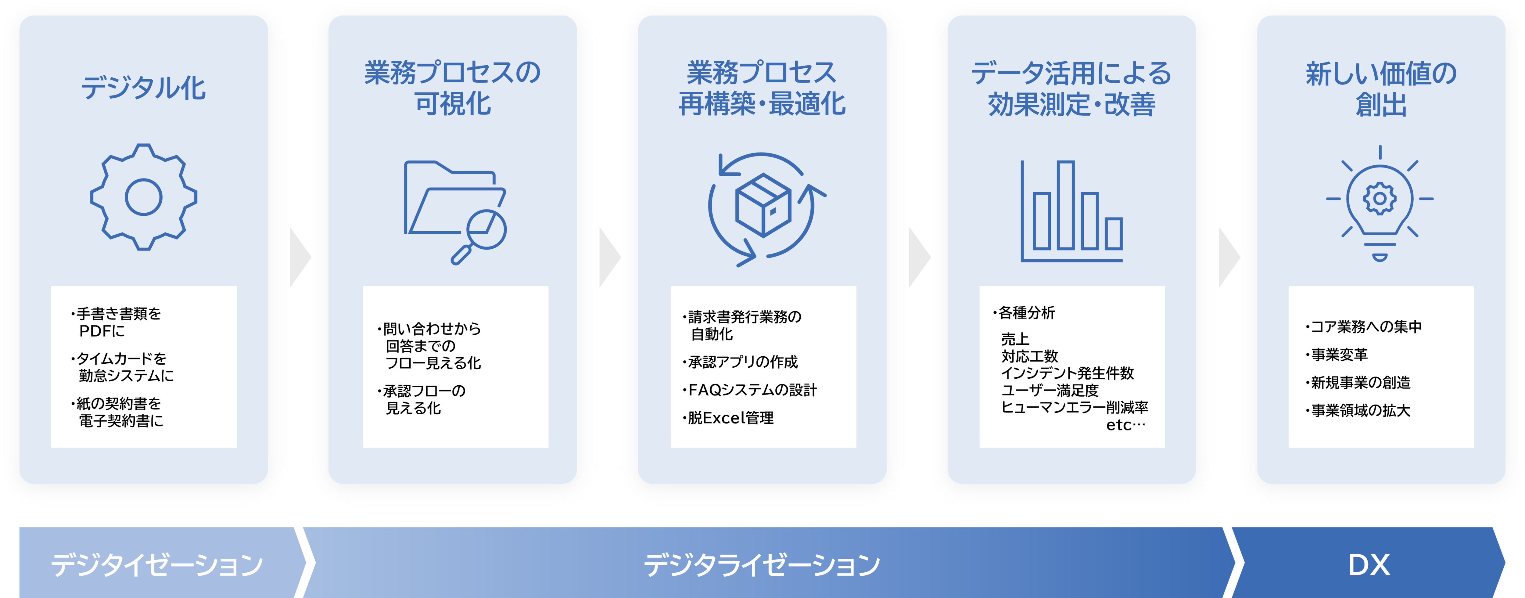 DX化に向けた業務プロセス全体をデジタル化・変革することで、